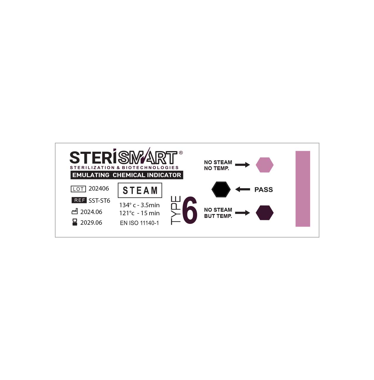 STERI SMART Class 6 Emulating steam indicator strips are designed to be used in steam sterilizers operating at 121°C – 15 minutes and 134°C-3.5 minutes.
